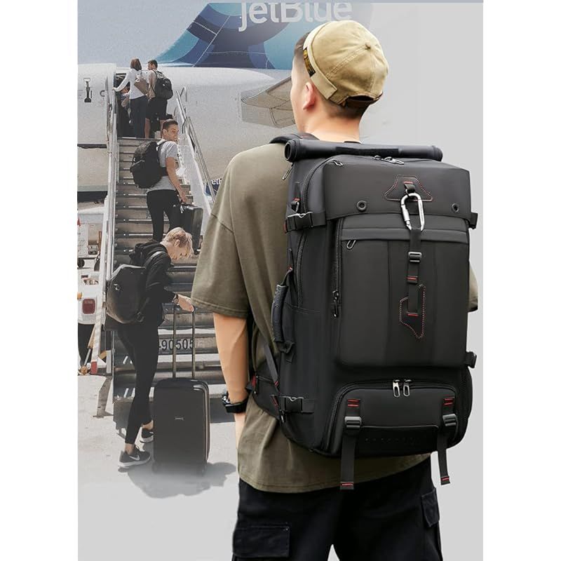 shrradoo 登山リュック 60 L 大容量 ファスナー リュックサック バックパック 17インチPC スクエア 防水 ハイキング用 ハイキング キャンプ アウトドア 防災 旅行 ブラック 1