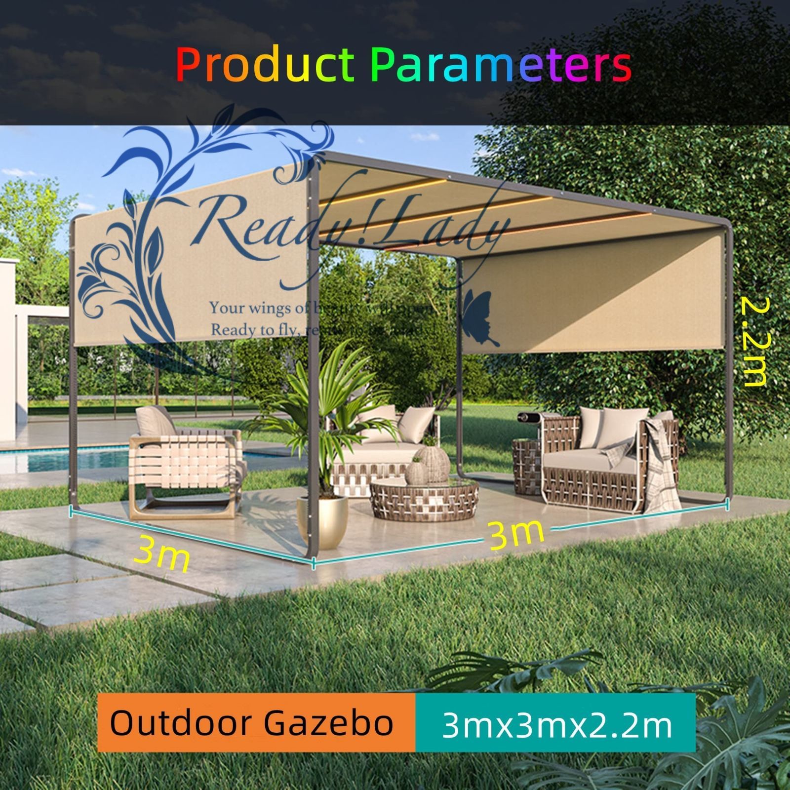 広々としたグランガーデンパーゴラ:当社のパティオパーゴラは10フィート×10フィートの面積をカバーし、中庭、テラス、プールサイドなどに設置するのに適した広々としたアクティビティスペースを提供します。パティオが大きくても比較的小さくても、このパーゴラは審美的に優れています。 屋外スペースに加えてください。ガゼボのサイズは300cmx300cmx220cmです。