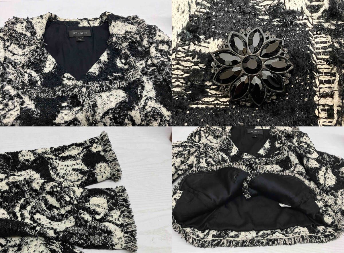 St. John セントジョン ジャケット ジャガード アメリカ製 表記サイズ 4 ブラック ホワイト フリンジ ラメ 通年の