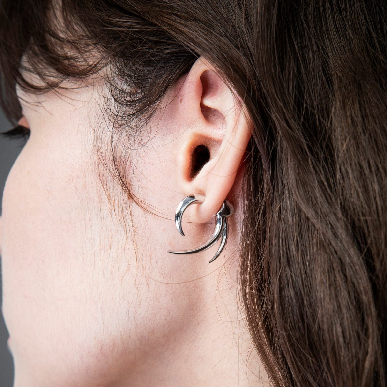 A sculptural swirl for the ear. The Cyclone pairs a minimalist, hinged hook closure with a gently spiraling silhouette that resolves into a single, fluid line when worn. The mirror-polished surface catches light softly, amplifying the refined luster of sterling silver for an elevated, understated look. Balanced proportions make it effortless with a T-shirt or tailoring, solo or stacked; the profile is sharp, clean, and unmistakably modern.