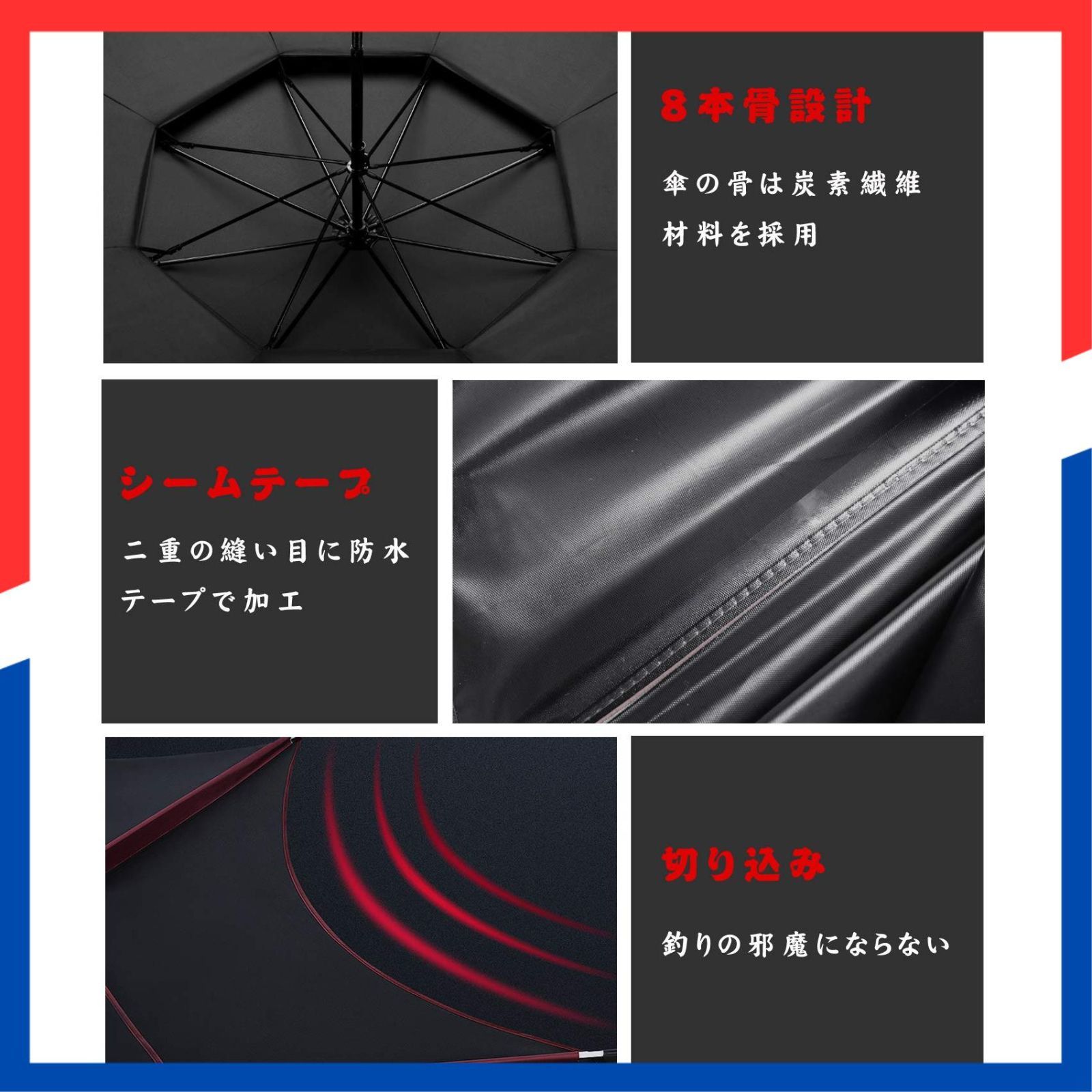 品質:8骨は全て高強度炭素繊維材質で作られて、良い強度と耐久性を持っています。ジョイントポールは軽いアルミを使う、収納する際は、パラソル部分とポール部分が外れて、収納袋に入れって、小さくまとめて持ち運びができます