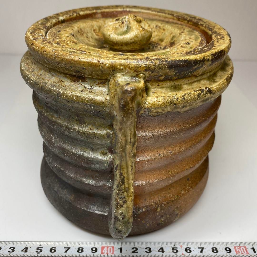 名工 谷本充生 伊賀水指 共箱 高さ約15.5㎝ 蓋込 東な7-0114 2 F
