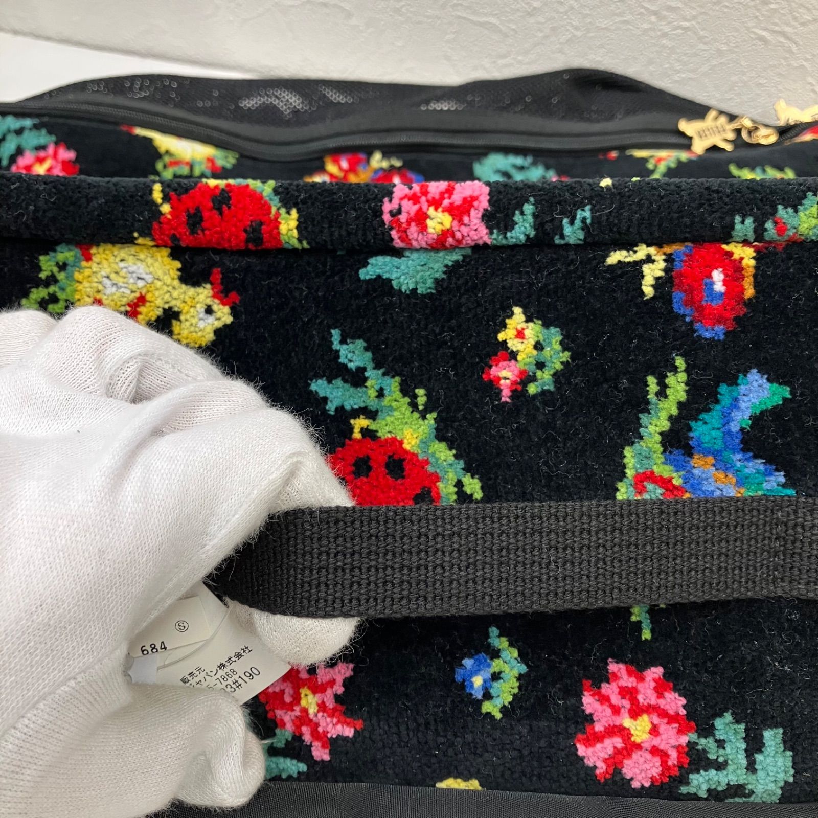 6598 美品 FEILER フェイラー ハイジ ブラック 黒 シュニール織り トラベルポーチ ガーメントケース トラベルバッグ パッキング パッキングポーチ レディース マルチケース マルチポーチ 大きめポーチ ハンドル付き 持ち手つき