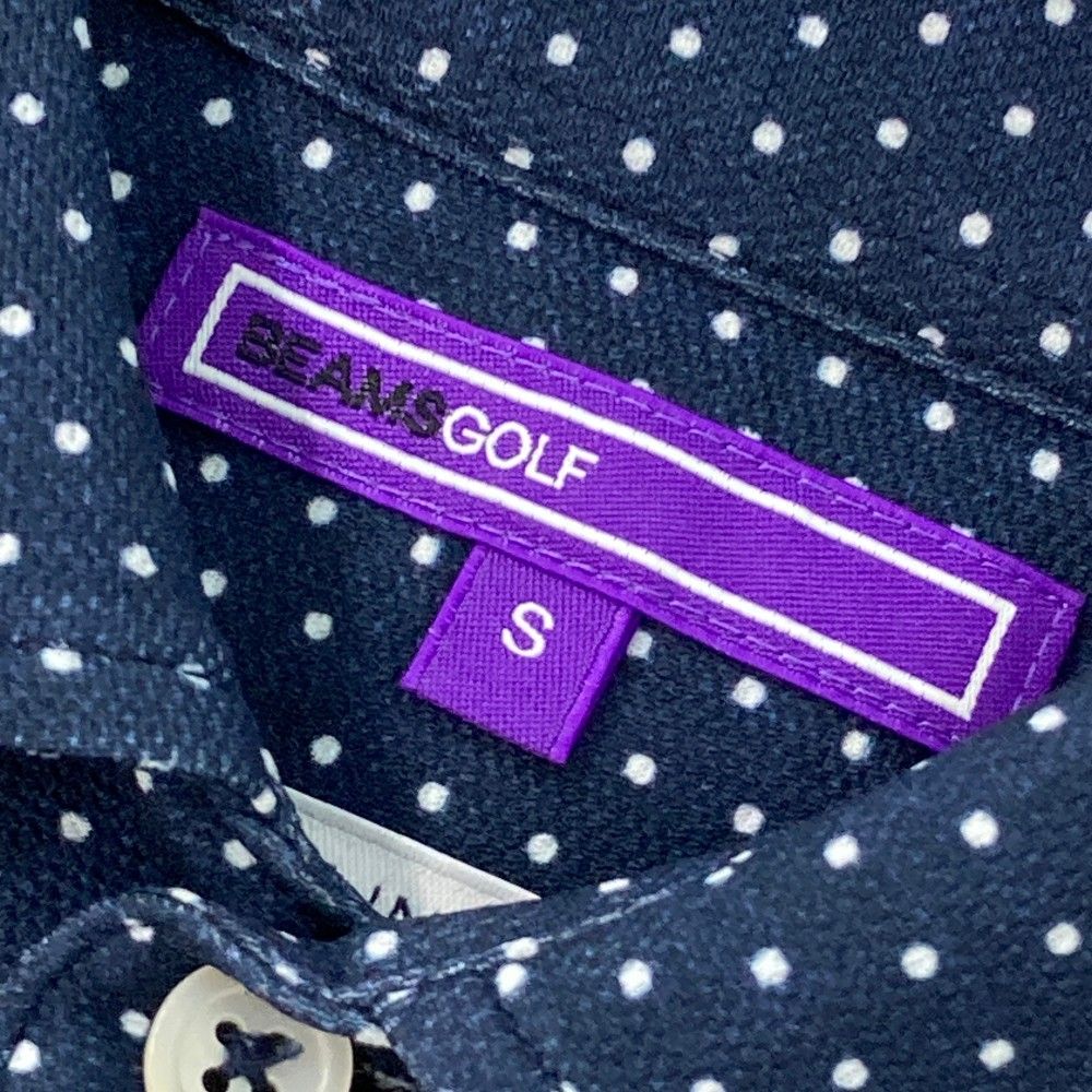 サイズ S BEAMS GOLF ビームスゴルフ 半袖ポロシャツ ワッペン ドット柄 ネイビー系 ゴルフウェア メンズ ストスト