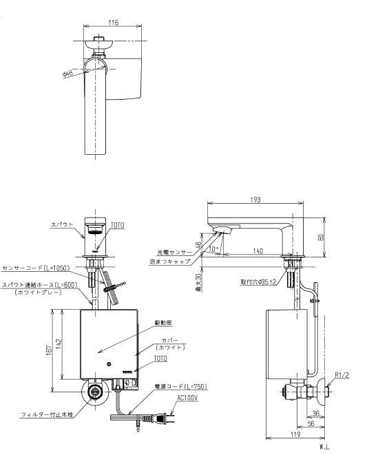 TOTO 台付自動水栓 TENA 12 F