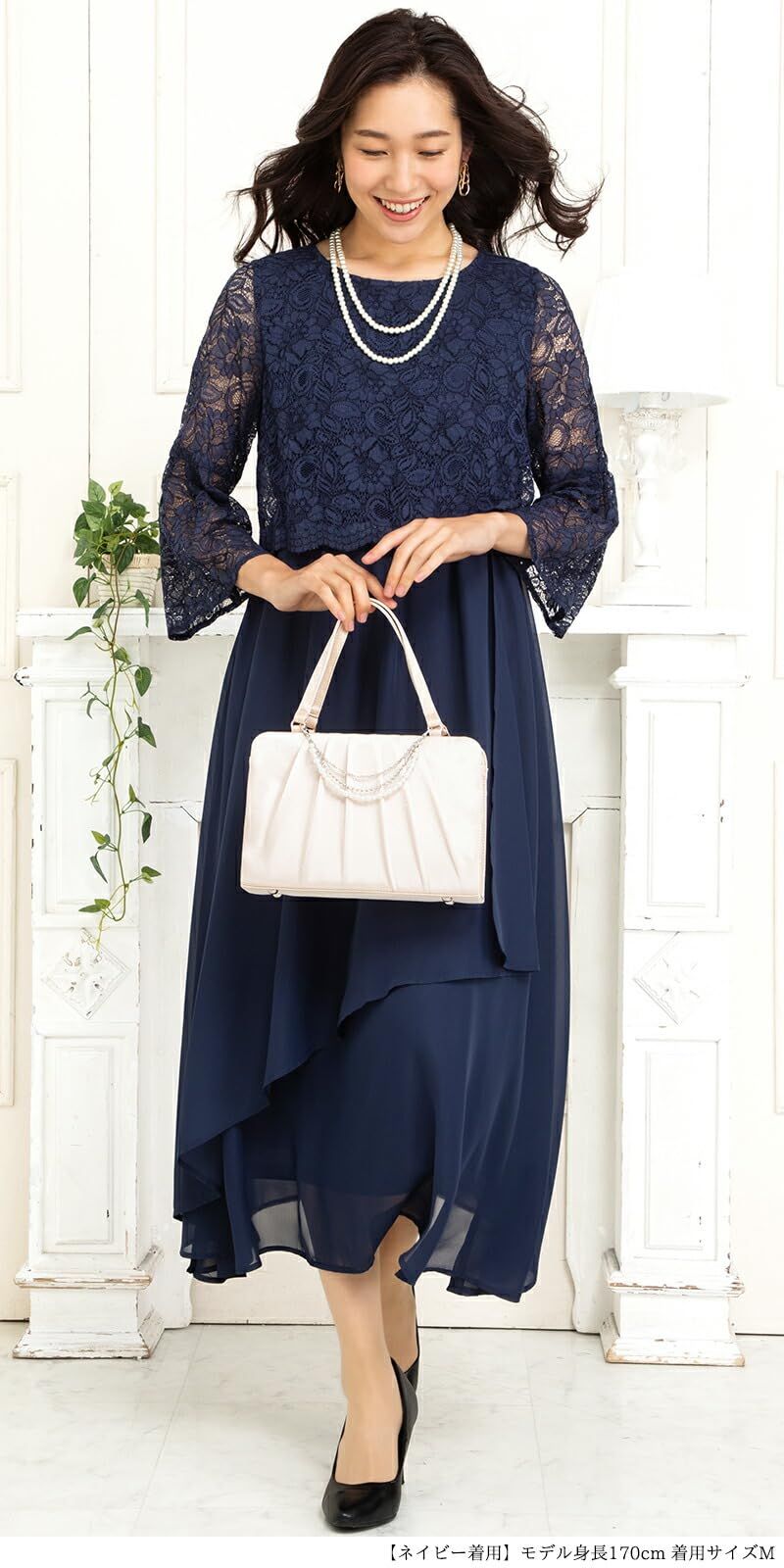 [アッドルージュ] パーティードレス 結婚式 お呼ばれ 二次会 発表会 大人 20代 30代 40代 50代 母親 親族 大きいサイズ 大きめ ロング ゆったり セレモニー レース ロングドレス【t9059】 (ネイビー, L)