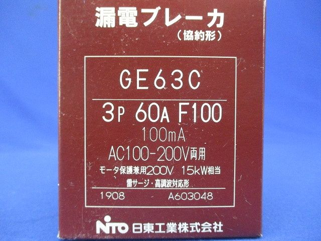 商品名 :漏電ブレーカ 3P60AF100 AC100-200V両用