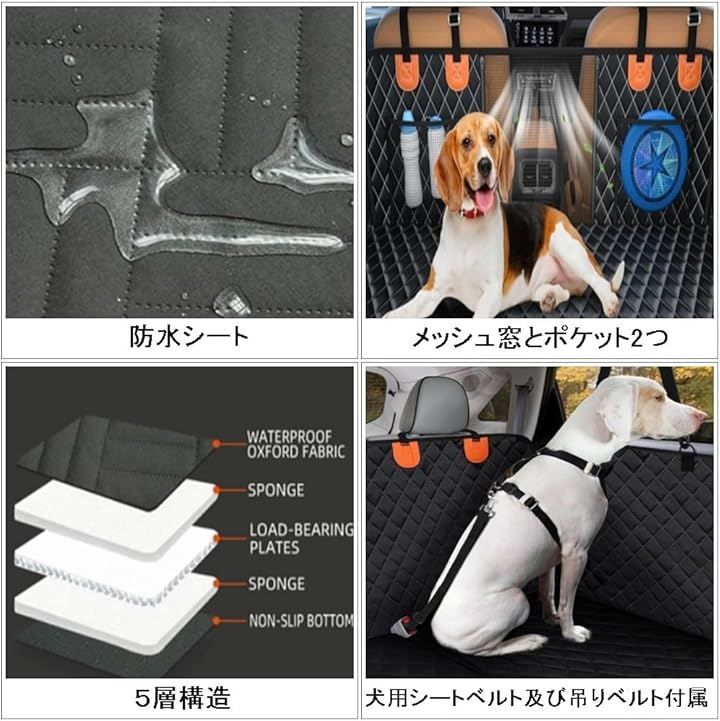「対象車種・サイズ」 〇 対象車種:普通車・大型車 〇サイズ:165cmx131cm 重量1.0kg「色」ブラック「付属品」吊りベルト x 2本、犬用シートベルト 1本