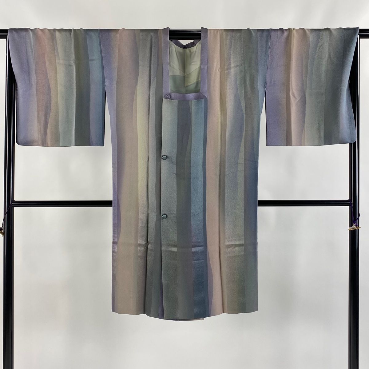 道行 身丈107.5 cm 裄丈68 L 和装コート 角衿 縞 ぼかし 灰緑 正絹