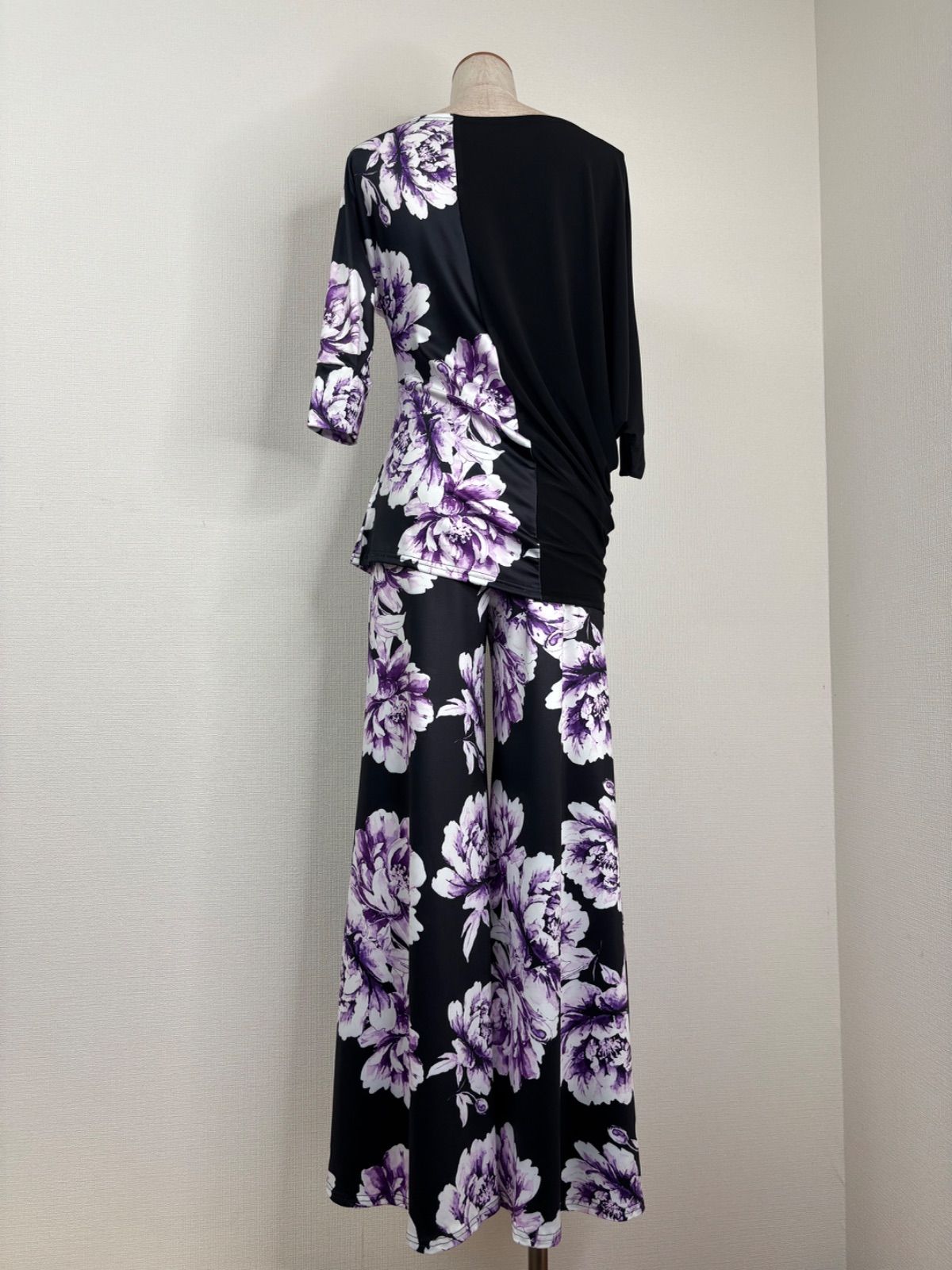 社交ダンス ブラック×パープル 変形スリーブ 裾スリットフ パンツ パンツセットアップ 衣装