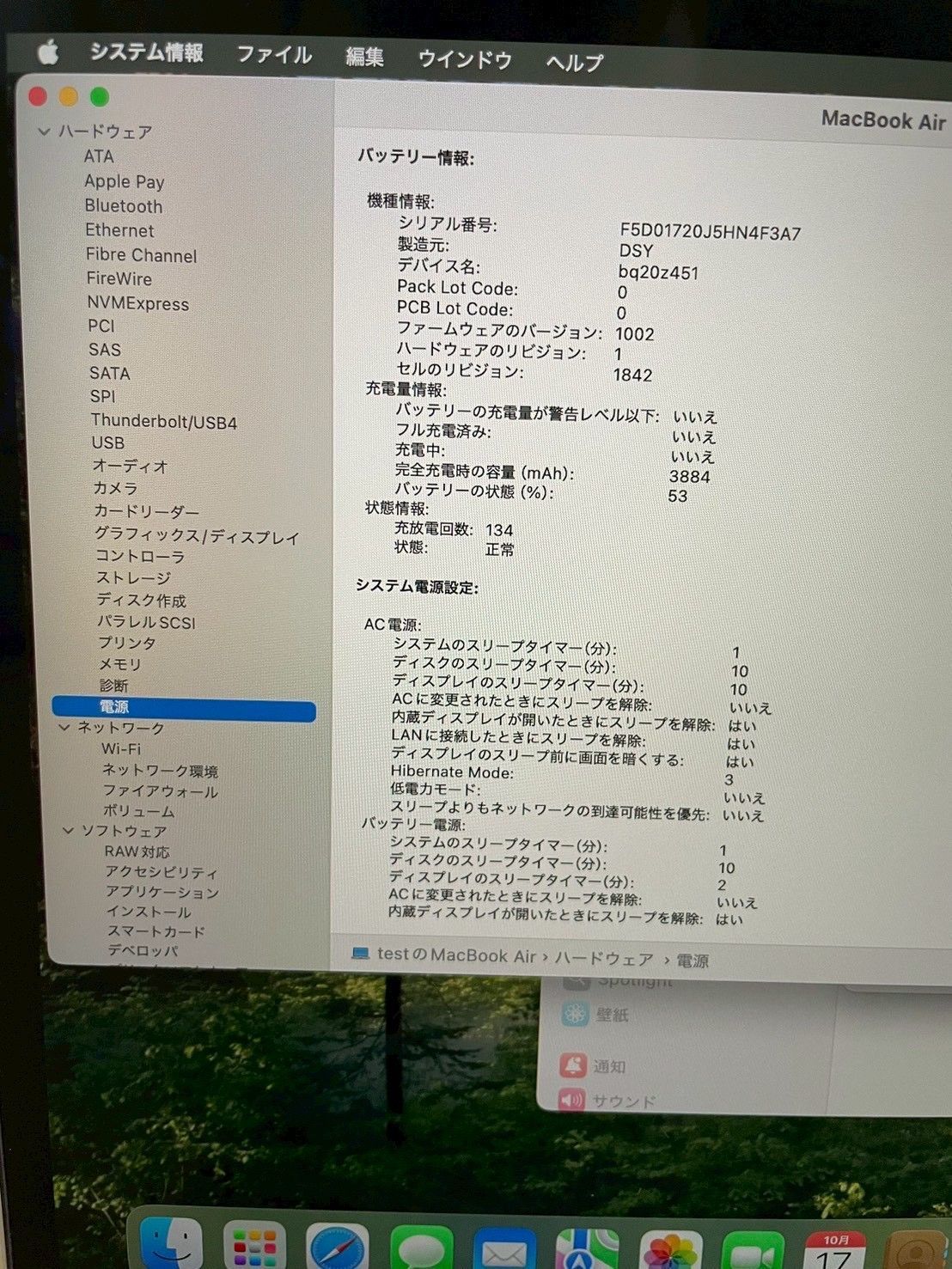 ・バッテリー充放電回数:134回(正常範囲内)