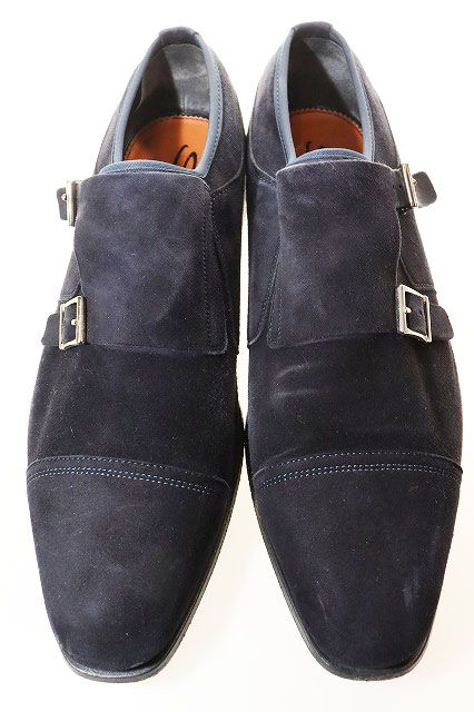 サントーニ SANTONI ダブルモンク ドレスシューズ サイズ9 17168 イタリア製 スエード ネイビー ブランド古着ベクトル 251020