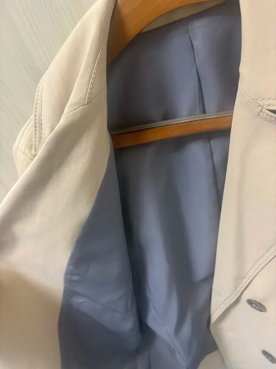 ベージュで裏地はネイビー