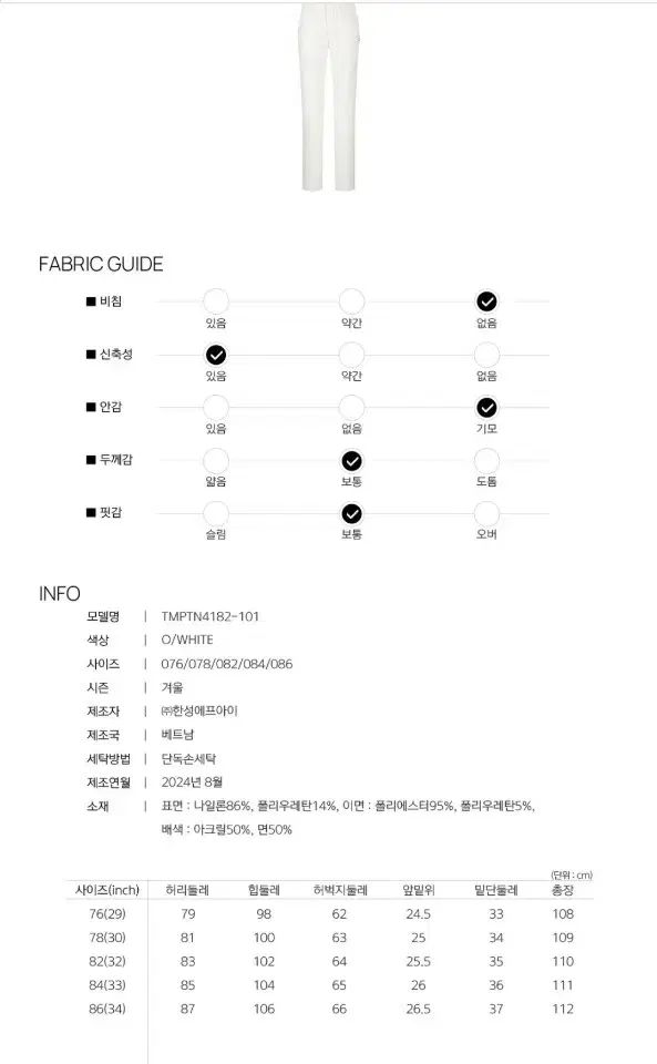 メンズ 78] 30~31 秋 冬用 白
