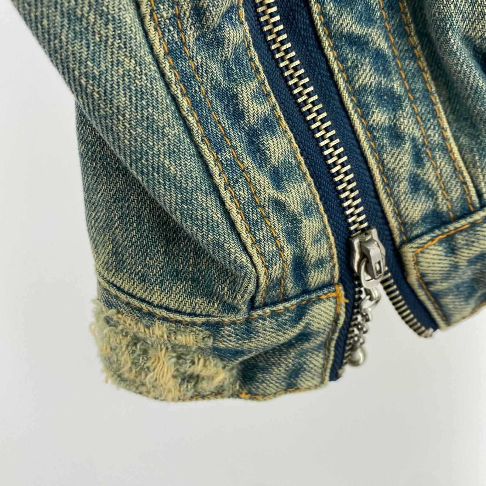 ZIP-UP DENIM DAMAGED JACKET 2 ブルー