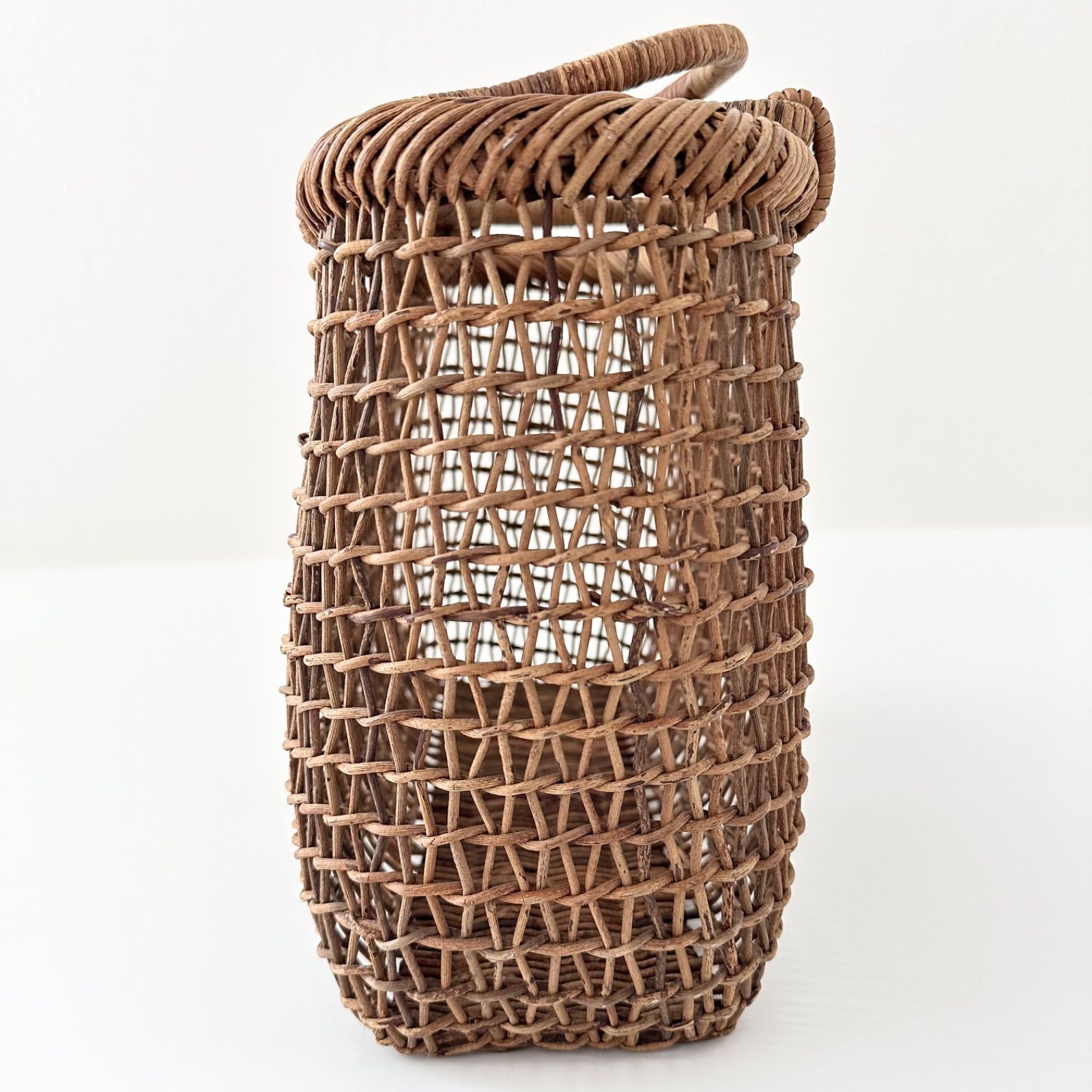 「東北地方の伝統工芸として知られる“あけび蔓”を使用した手編みのかごバッグ。しなやかで丈夫なあけび蔓を丁寧に編み上げた一品です。こだし編みの軽やかな透かし模様が美しく、自然素材ならではの温もりを感じられます。日常使いはもちろん、インテリアとしても映えるナチュラルで上品な雰囲気のかごバッグです☺︎」