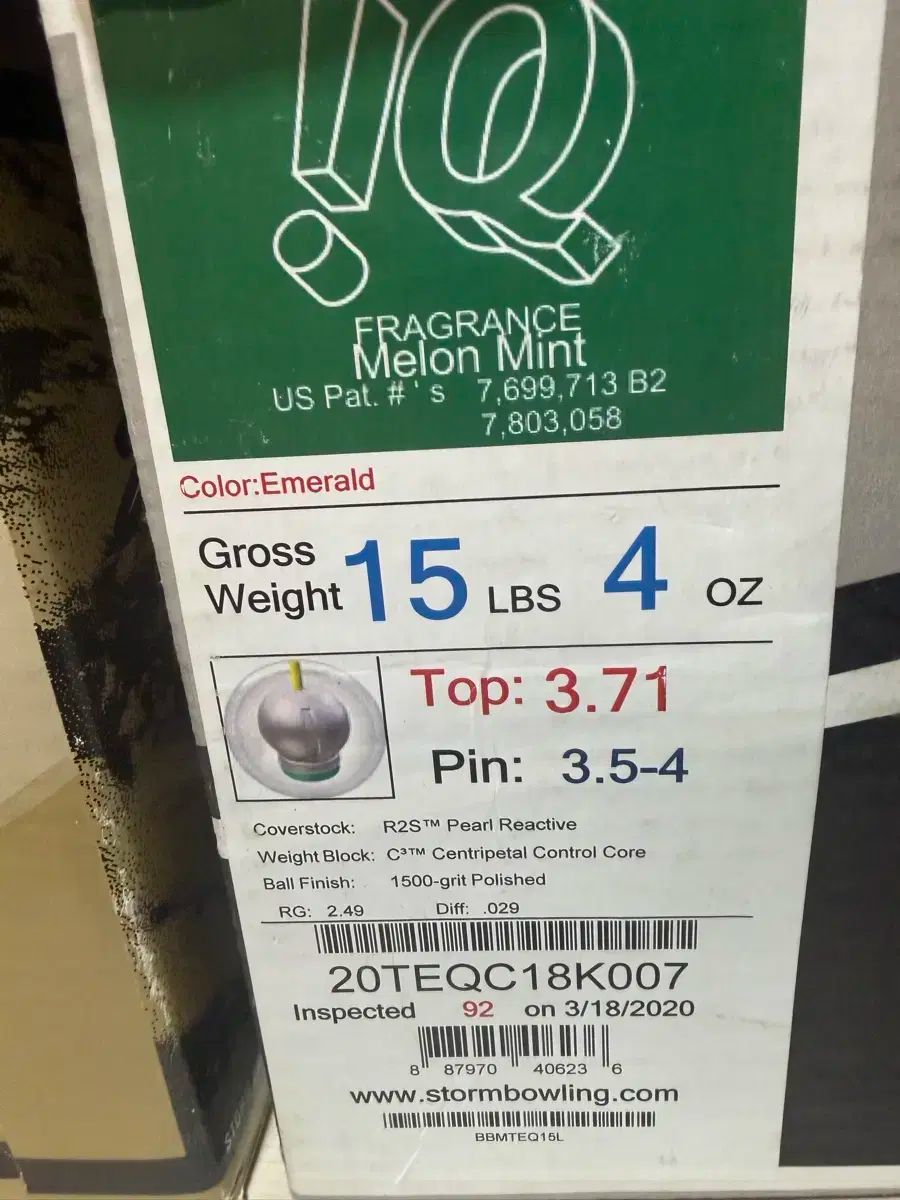 ストーム アイキュー エメラルド ボーリング 15パウンドです。R2S パール リー リアクティブ カバー ストックで製作されました。メロン ミント香りがほのかにして良いです。別途 コメント 無ければ 馬狼 照英 安全決済 お願いします!
