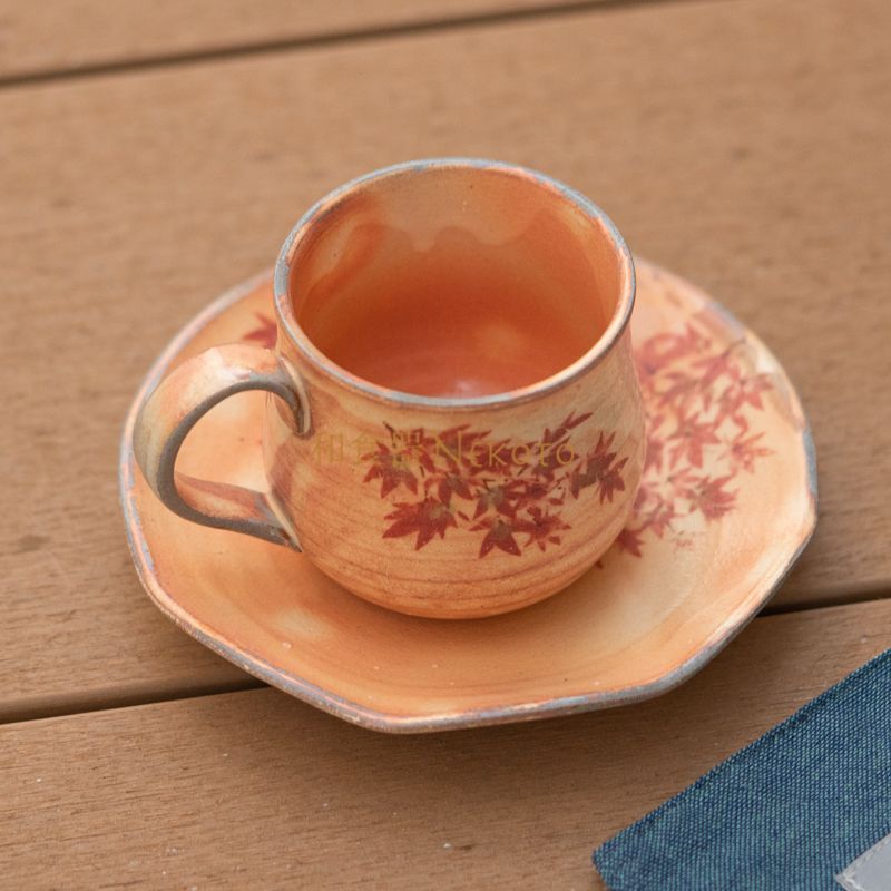 2点ペア御本手 紫陽花&紅葉 コーヒー碗皿カップ プレート碗皿 セット おしゃれ カフェ 和食器 食器 手描き茶器 茶道具 器 うつわ 陶器 おうち プレゼント