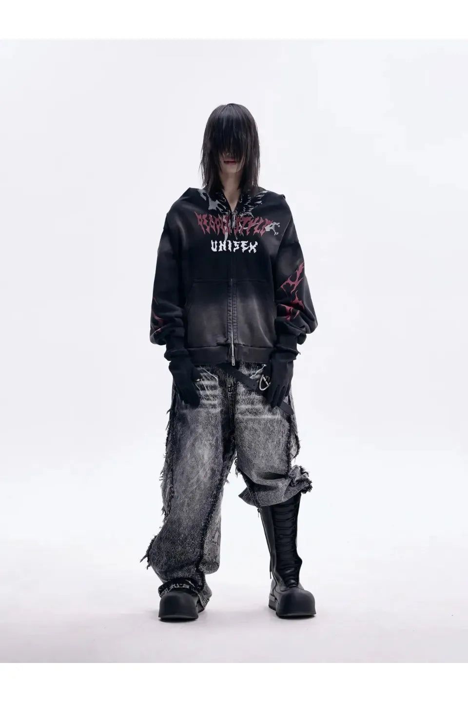 商品名 / Name:Ripped Full Zip Face Mask Hoodie