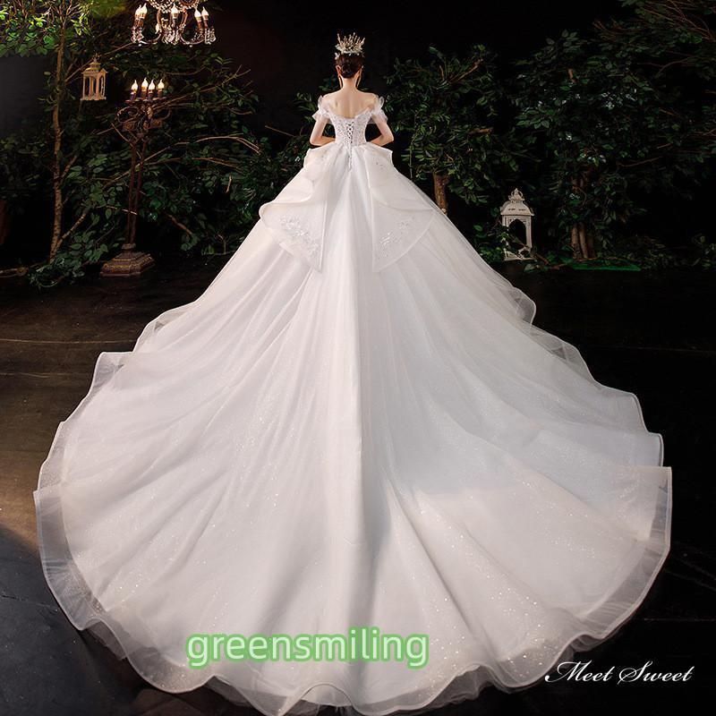 ウェディングドレス ロングドレス プリンセスラインドレス オフショルダー 二次会 結婚式 前撮り 花嫁 ウエディングドレス チュール 挙式