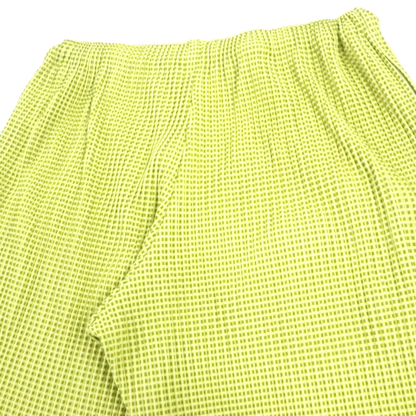 HOMME PLISSE ISSEY MIYAKE オム プリッセ イッセイミヤケ チェック柄 プリーツ加工 ジャケット ワイドパンツ セットアップ イエロー グリーン 1 メンズ