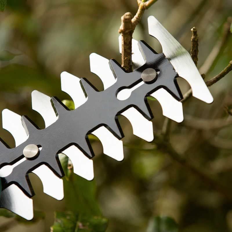 1台2役、芝生バリカンと園芸バリカンのセット、アンチブロッキングシステム、質量は500グラム(芝生バリカン装着時)であつかいやすいコンパクトなボディ。、マルチクリックシステムでブレードの交換で手が汚れる心配がない。