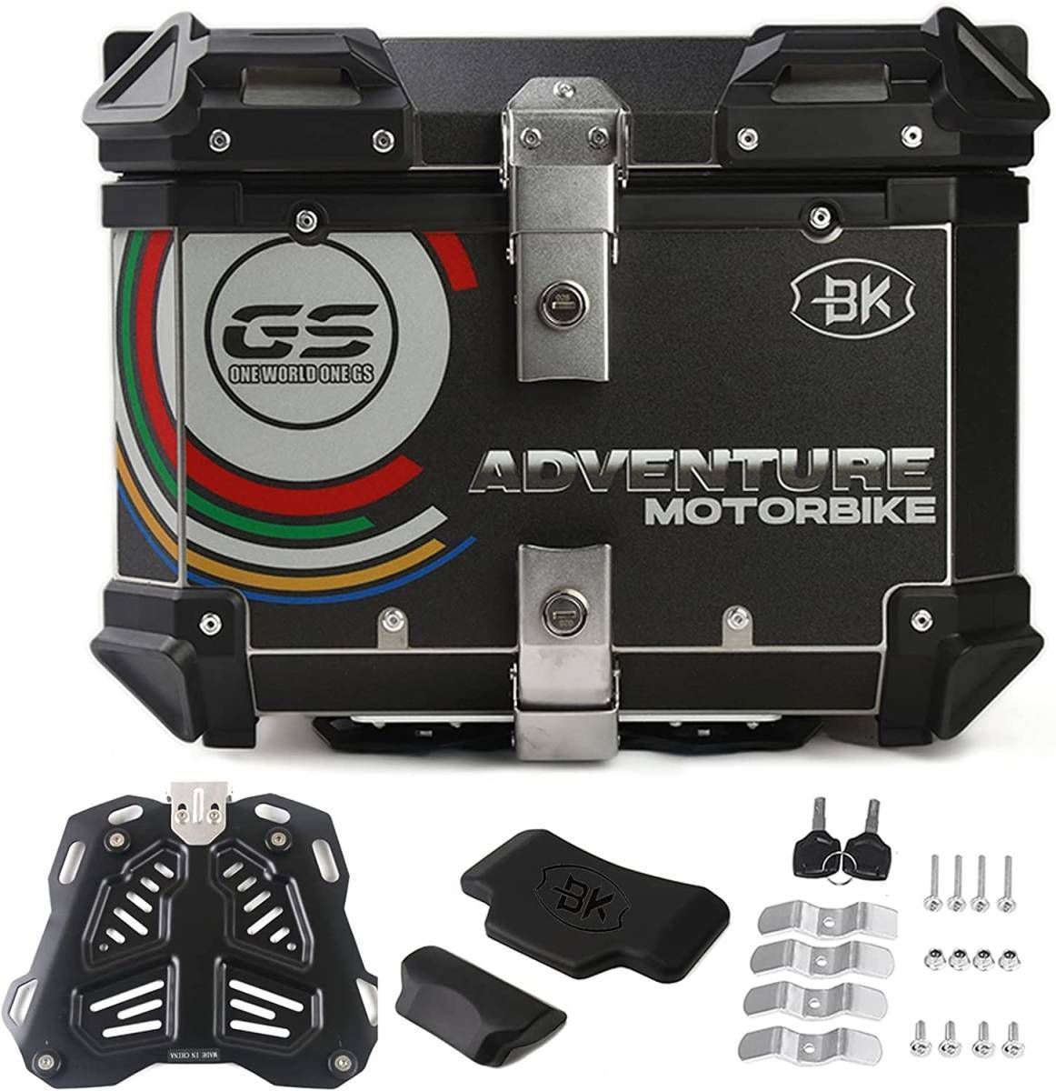 バイク リアボックス 大容量45 L アルミ トップケース バックレスト付き 革張り 防水防塵 取付ベース付 鍵2本付 簡単脱着 ヘルメット収納