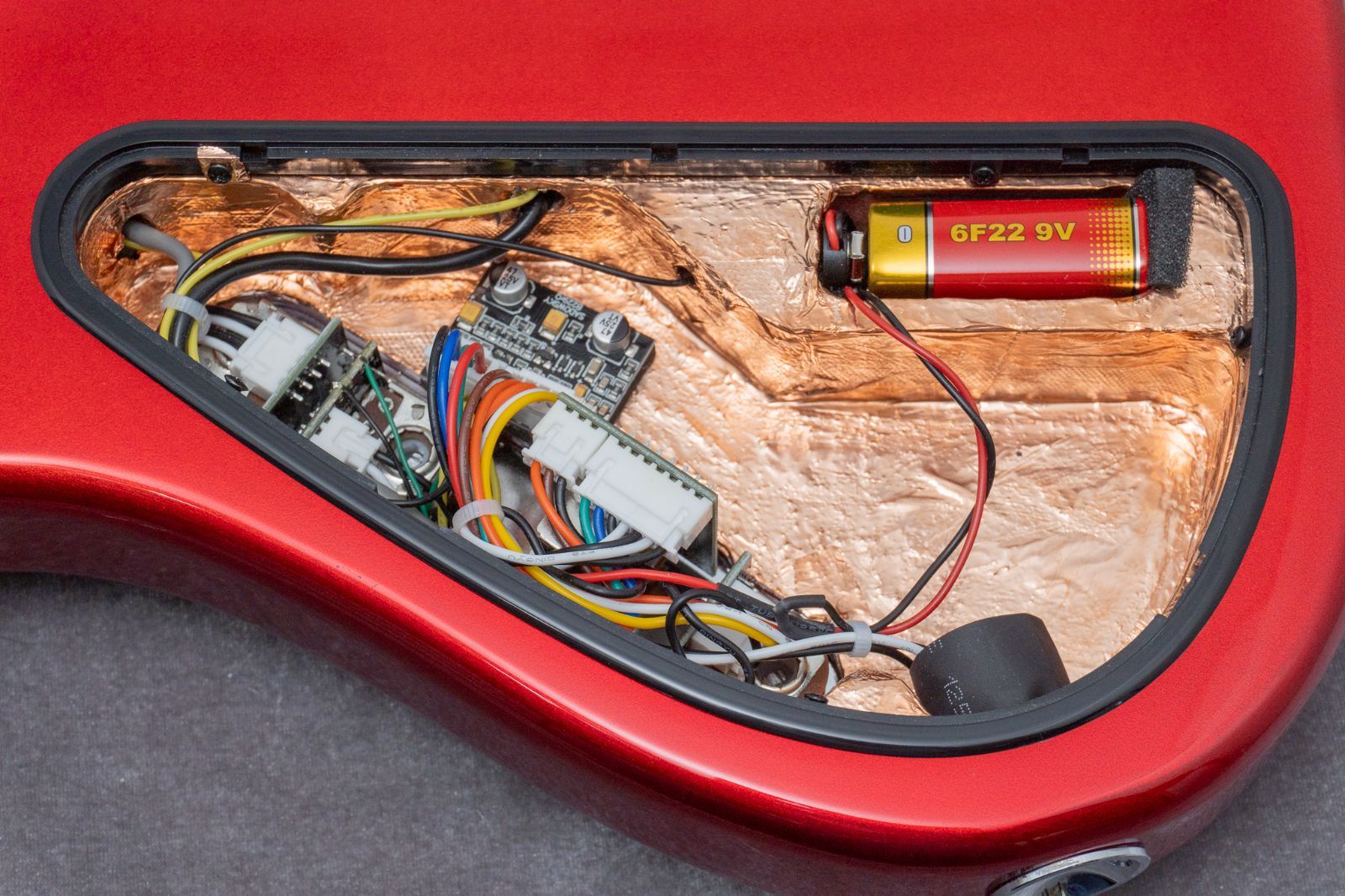キャビティの中に目を向けると、銅箔テープでシールディングが施されていますね。素晴らしいです。