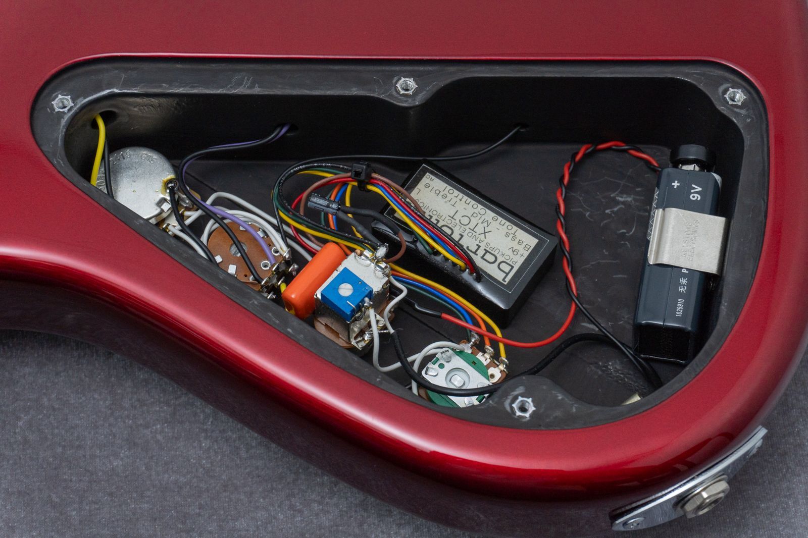 コントロール : マスターボリューム、バランサー、マスタートーン(プッシュ/プル、アクティブ/パッシブ)、トレブル/ベース、スペクトラムブースト(キャビティ内)