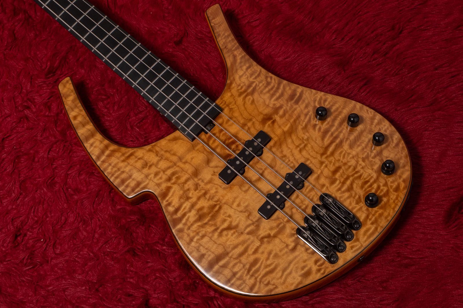 ボディはトップとバックにQuilted Mapleを使用したホロウ構造。