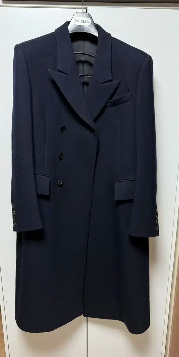 SYSTEM ブランドのネイビー カラー ダブル ボタン ロング コートです