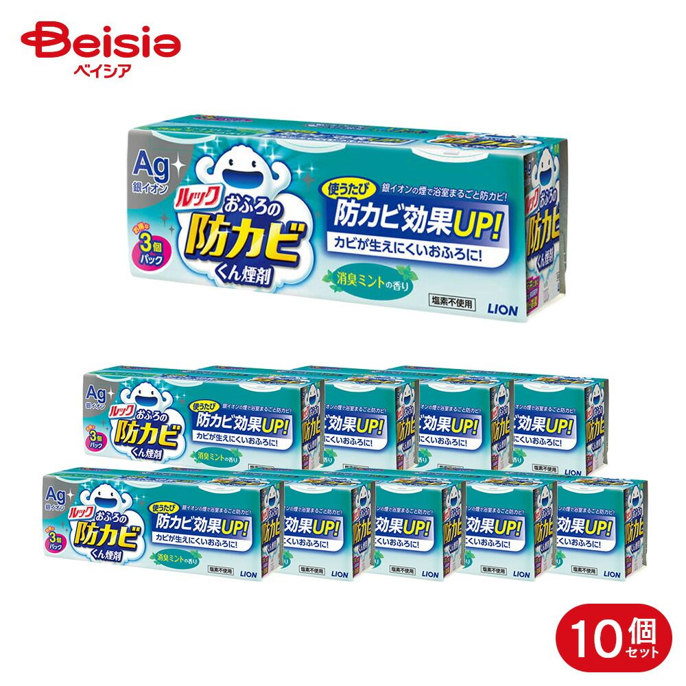 銀イオンの煙で黒カビ原因菌を除菌して、浴室のカビ発生をまるごと防ぐ『ルックおふろの防カビくん煙剤』●「銀イオン」の煙が、浴室の黒カビ原因菌をすみずみまで除菌して、黒カビの発生をモトから防ぎます。●1~2ヶ月ごとに使えば銀イオンの防カビ効果が高まり、普段の掃除だけでキレイが続きます。●スッキリした消臭ミントの香り。●お得な3回分セットだから定期的に使いやすい。