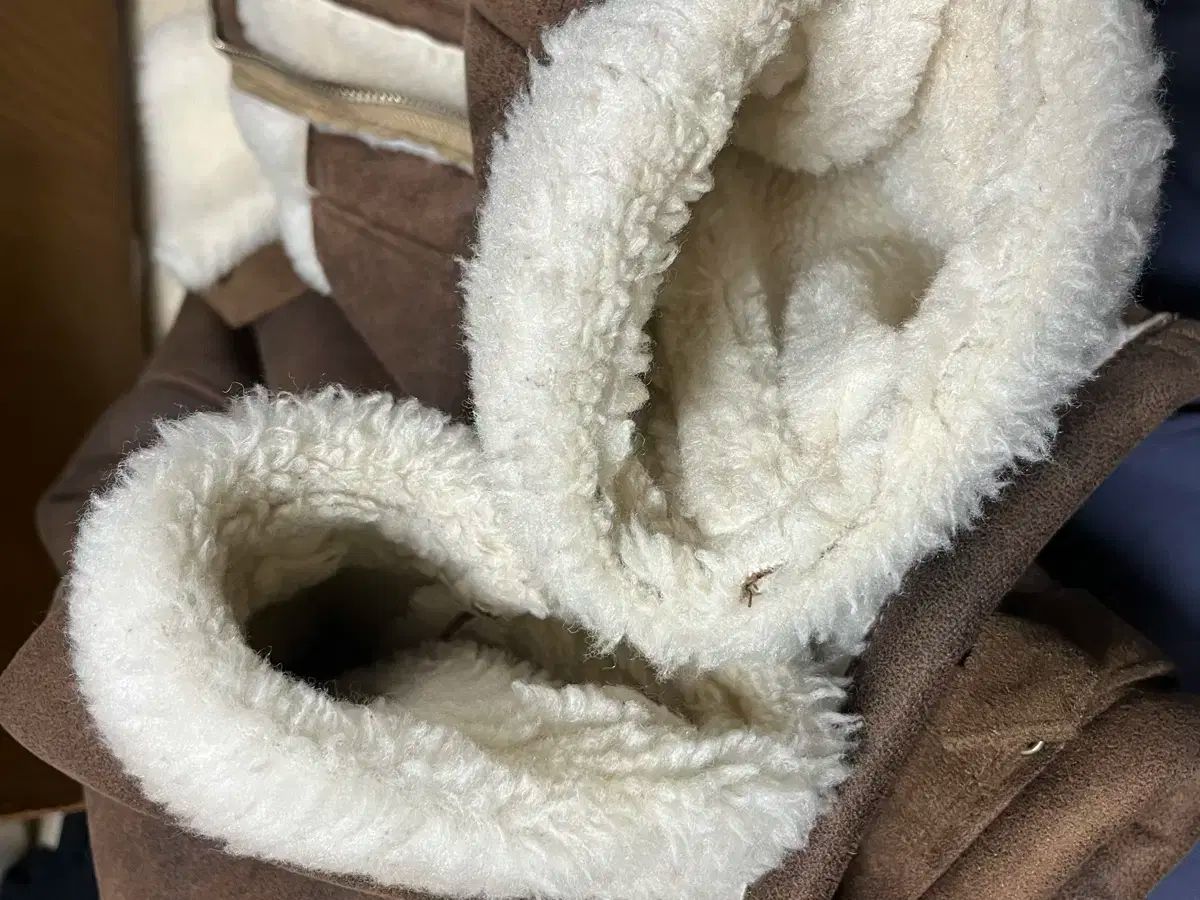 実際に着用2回、状態良好です。内側下側のファーに麻のボトムスとの摩擦で生じる、本当に微細な毛羽立ち..? 糸..?