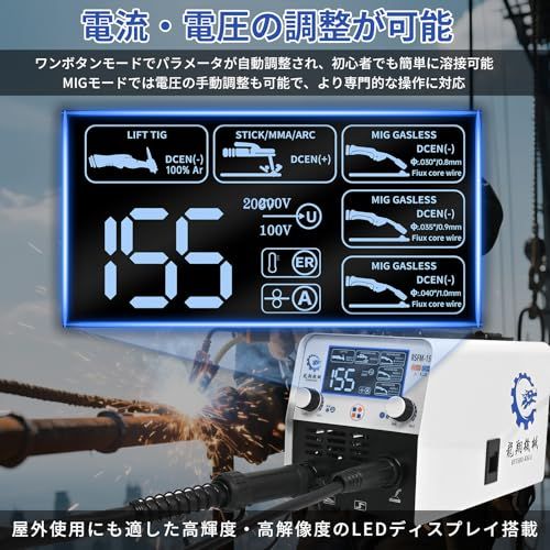 【簡単操作&高精度調整】 高解像度 LED 液晶パネルで電流・電圧の自動 / 手動調整が可能。ワイヤーに応じた最適パラメータを自動設定し、スパッタを低減。初心者でも日本語取扱説明書を見ながらすぐに使いこなせます。