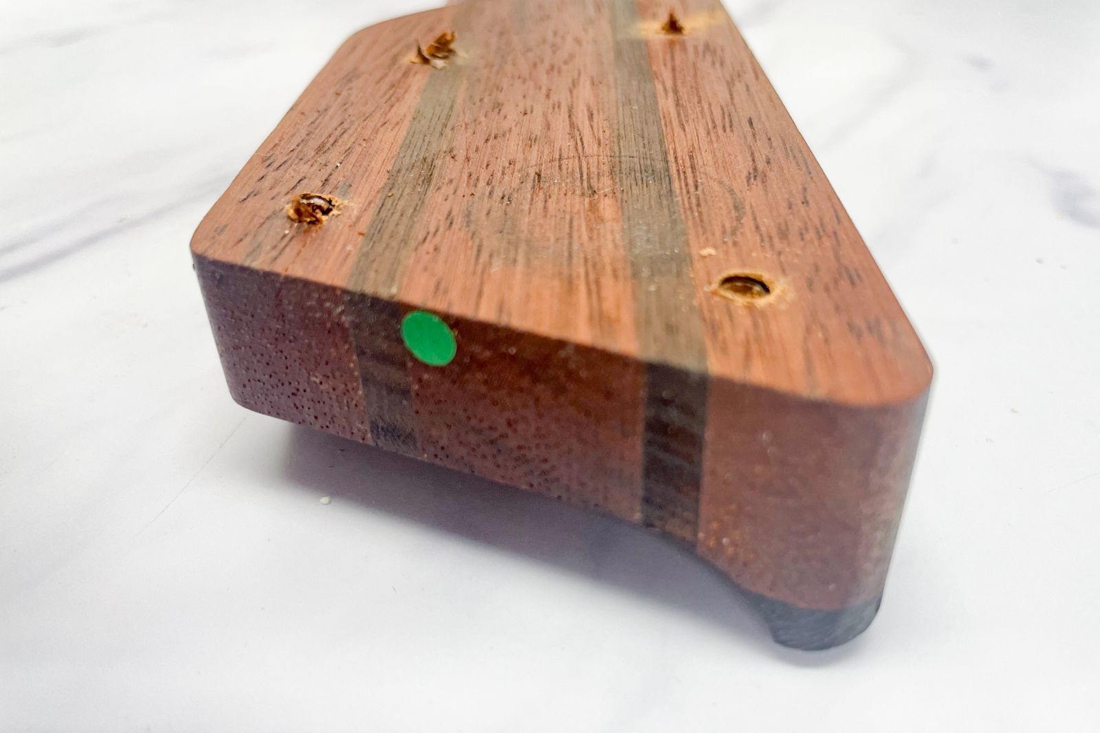 複数の木材を貼り合わせてネックを作る手法は、左右差や個体差を薄め、より高い安定性を得るためのものです。