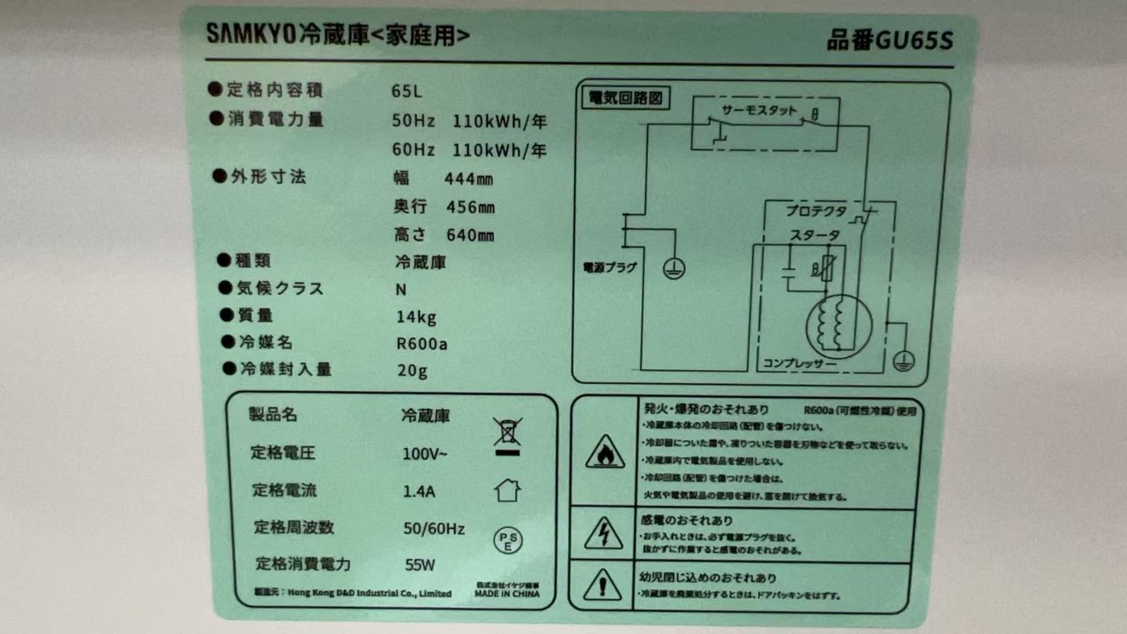 SAMKYO 冷蔵庫 小型 65 L GU S 4417249
