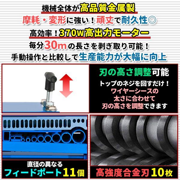 高効率! 370Wの高出力モーターは毎分30mの長さのワイヤーを剥ぎ取ることができます。