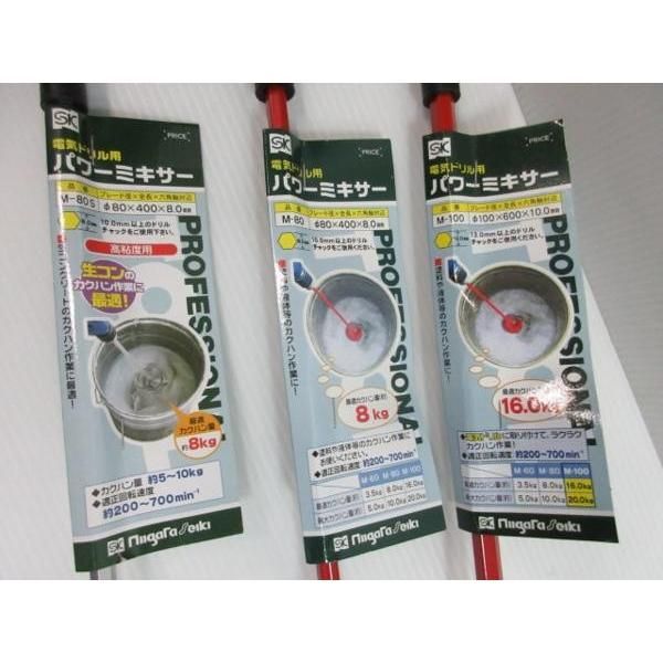 新潟精機 電気ドリル用 パワーミキサー M 100 80 S 3点セット 撹拌 かくはん セメント モルタル 接着剤 塗料 等 カクハン 機 かき混ぜ かきまぜ