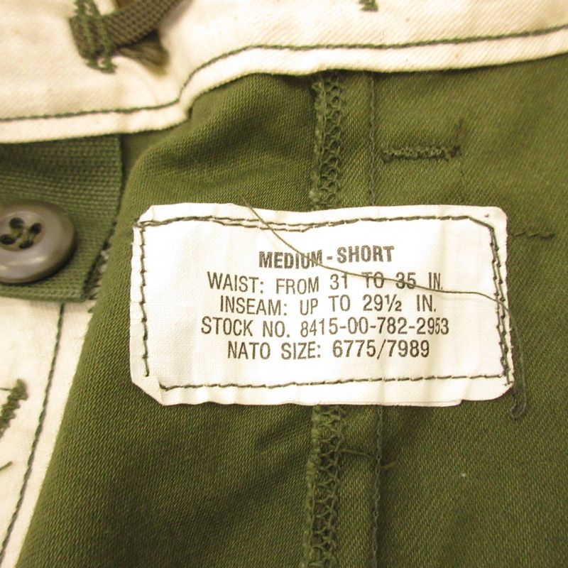 衣料 ミリタリーイリョウ カーゴパンツ M-65 8415-00-782-2953 年式 70 s 社製 U.S.ARMY オリーブ サイズ 31 107