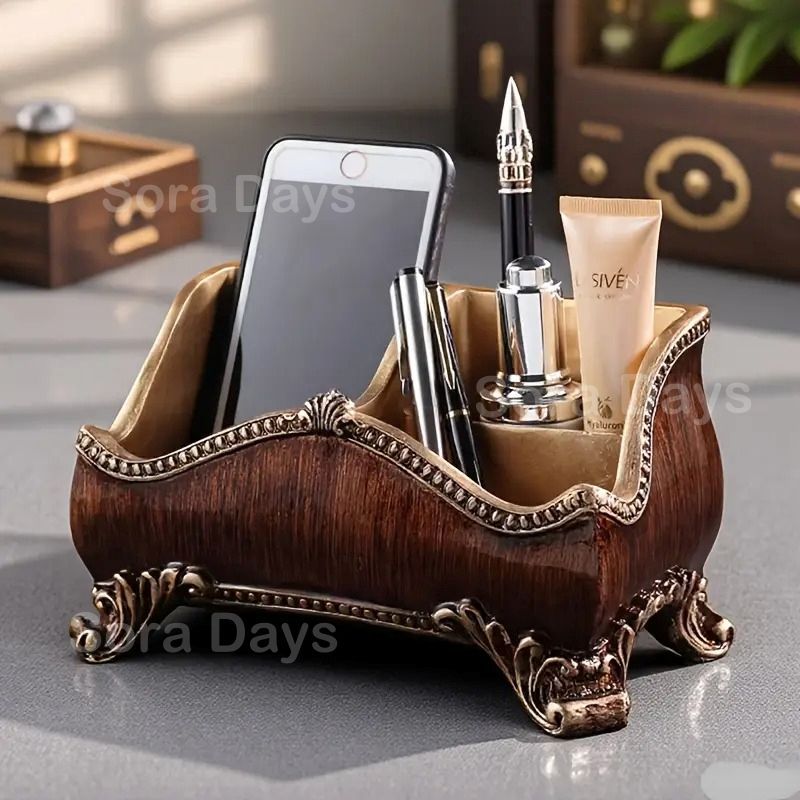 メイクスタンド コスメボックス ビンテージ風 レジン おしゃれ かわいい シンプル 感 モダン ナチュラル クラシック インテリア 北欧 ギフト 化粧品 ペンスタンド 玄関 ベッドルーム 寝室 オフィス リビング リモコン ×16 cm
