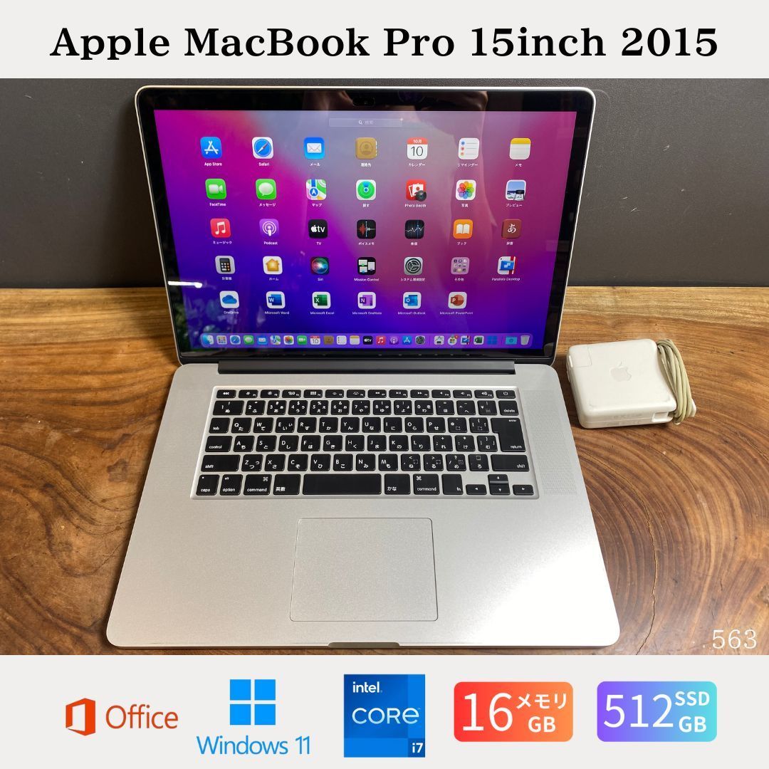 [極美品]Apple MacBook Pro 15inch 2015/Core i7 2.2GHz/メモリ16GB/SSD512GB/Windows11/Office 2021/563