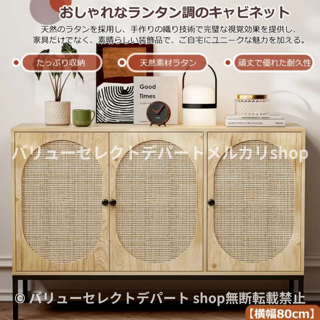 キャビネット ラタン サイドボード 北欧 薄型 木製 オーク おしゃれ オフィス キッチン 収納 スリム チェスト 扉 幅120 北欧モダン ビュッフェキャビネット アクセント コンソールテーブル 調節 な棚付き リビングルーム ダイニング 寝室