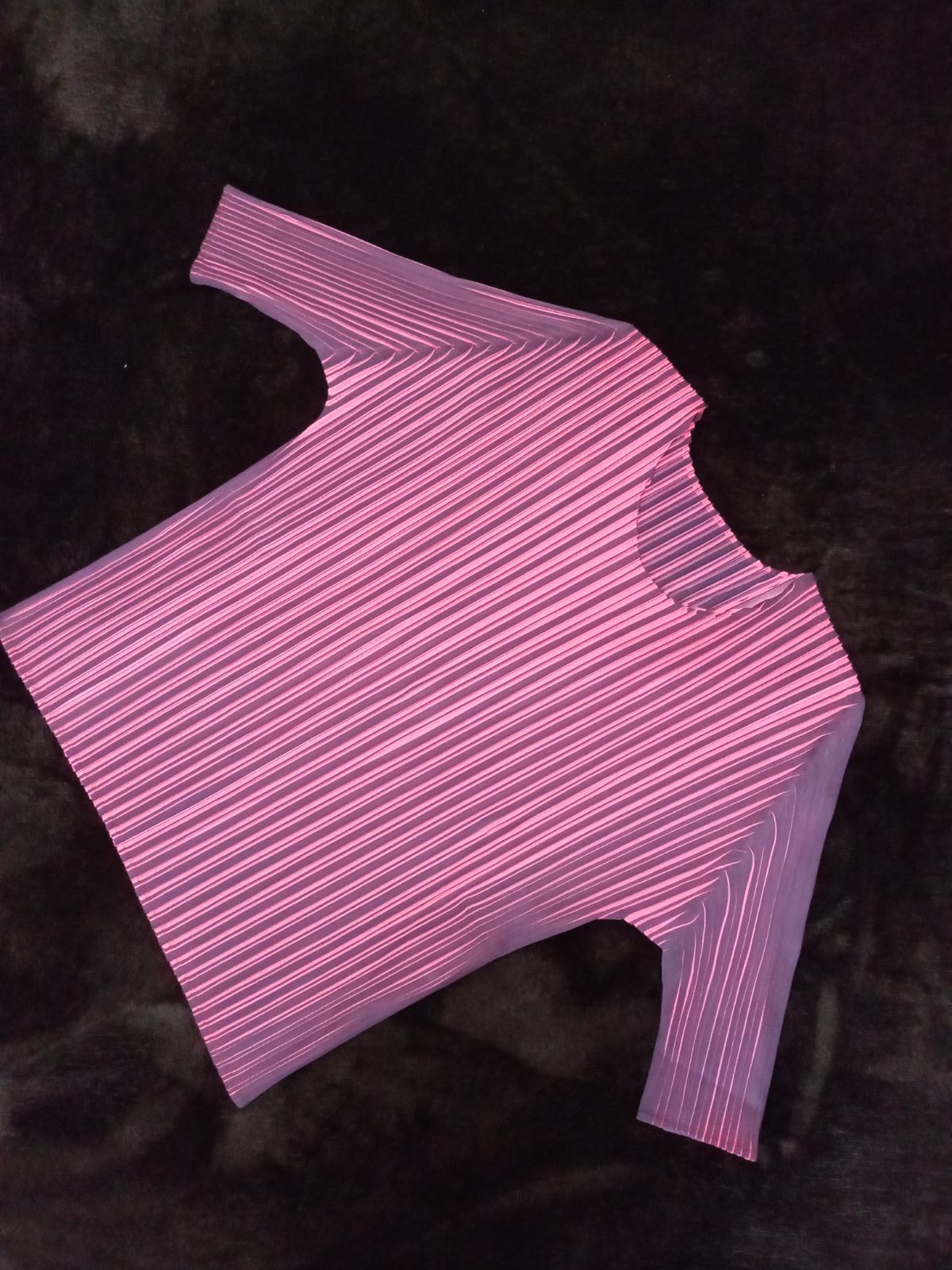 異なるプリーツの幅により、角度によって色見が変わります。