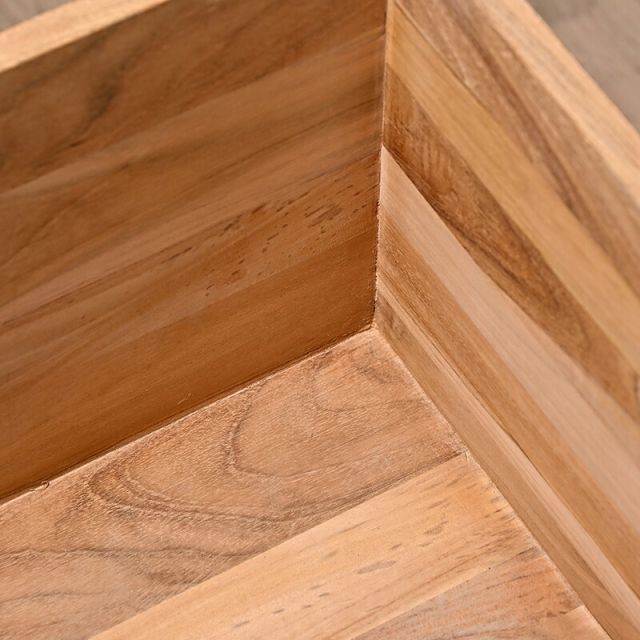 説明チーク無垢材のオシャレなプランターボックス。チーク無垢材を使用した重厚感のあるプランターボックス。ソープ仕上げをしたチークに、サンドブラスト加工を施しているので、味わい深い古木の雰囲気に。チークの質感や色味はグリーンとの相性がよく、お部屋に置くだけで雰囲気が一気にオシャレになります。シンプルで洗練されたデザインでどんな空間にも調和します。