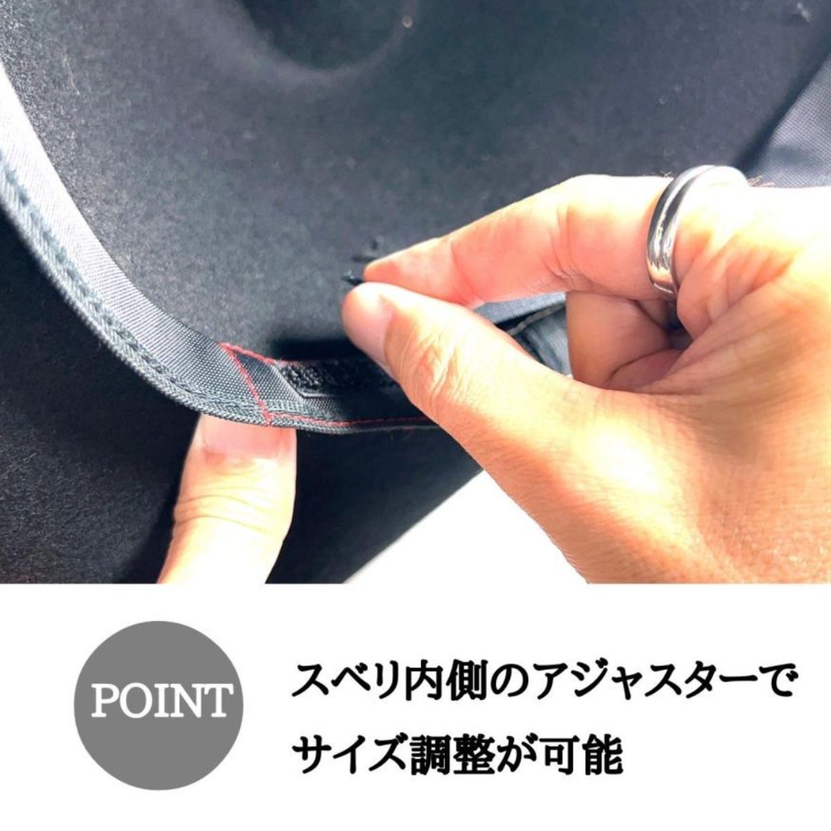 頭周り[約56.5~58.0cm]内側にアジャスター付き