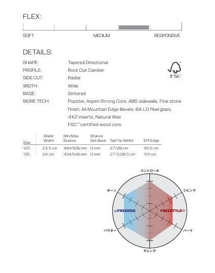 Dancehaul Gromはユニークなシェイプを採用した遊び心のあるオールマウンテンボードです。太めな幅とテーパードテールがターンやカービングを容易にし、深いパウダーでの浮力を提供します。