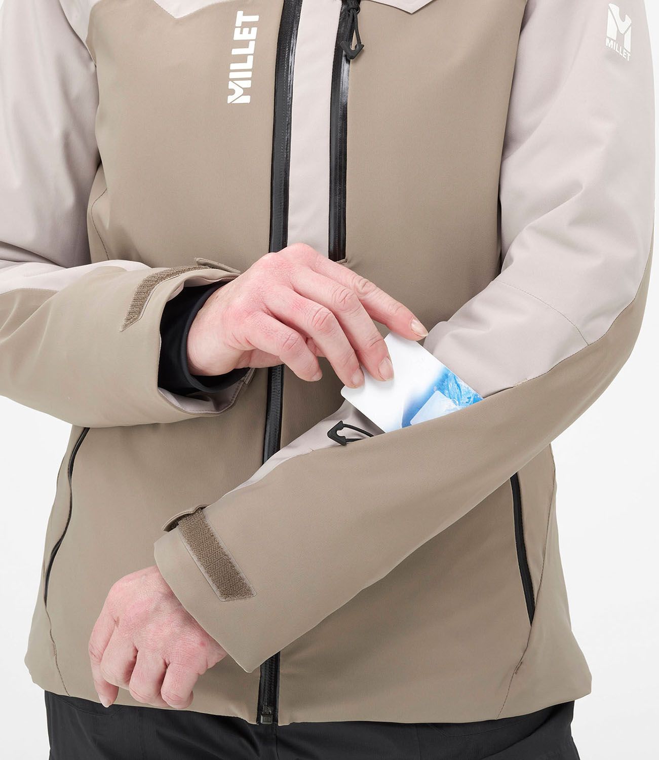 素材:ドライエッジ4ウェイストレッチ2層(ナイロン85、ポリウレタン15)、ドライエッジ2ウェイストレッチ2層(ポリエステル100)、プリマロフトシルバーエコ100G(リサイクルポリエステル100)