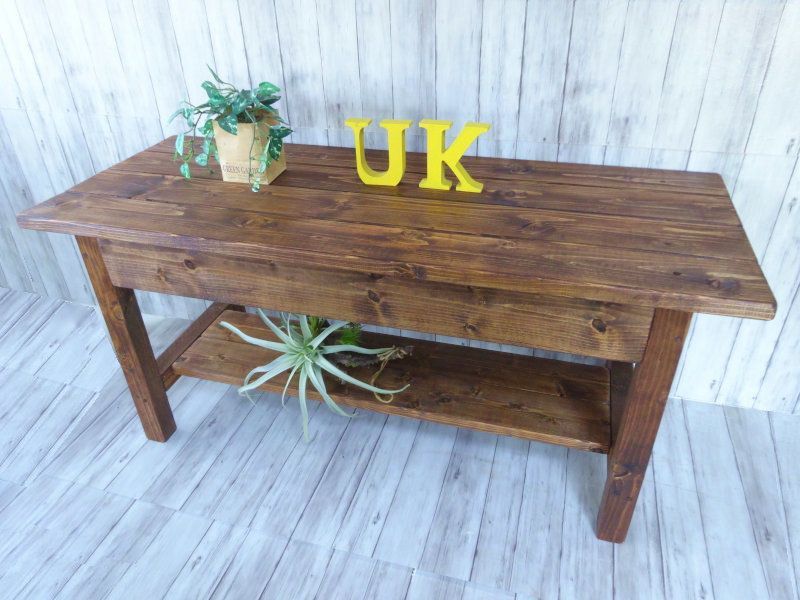 ハンドメイド ウッドテーブル ダークチーク色