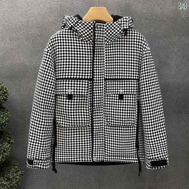 秋冬 コーデ メンズ 服 シンプル ファッション オシャレ 大人 かっこいい 大きいサイズ ストリート 紳士服 チェック柄 フード付き ダウン ジャケット 厚手 トップス