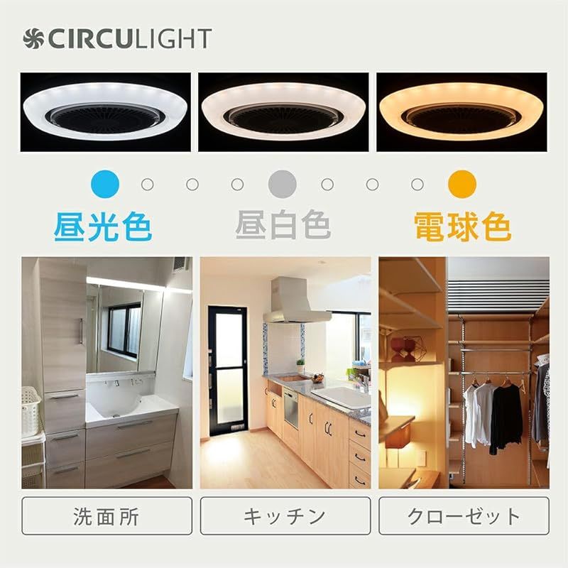 サーキュライトは「ライト」と「サーキュレーター」を組み合わせたシーリングファンライトです。天井に設置する事で循環効率がアップし、足元に置かないので邪魔にならず小さなお子様やペットがいるご家庭におすすめです。